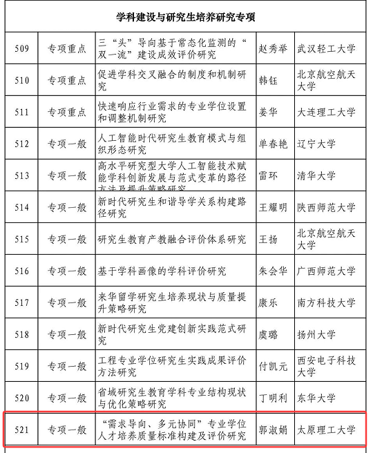 本次全国拟立项共540项,其中,山西省拟立项共5项,太阳成城集团拟立项2项。本次学院共申报3项,立项比率达到33.3%。