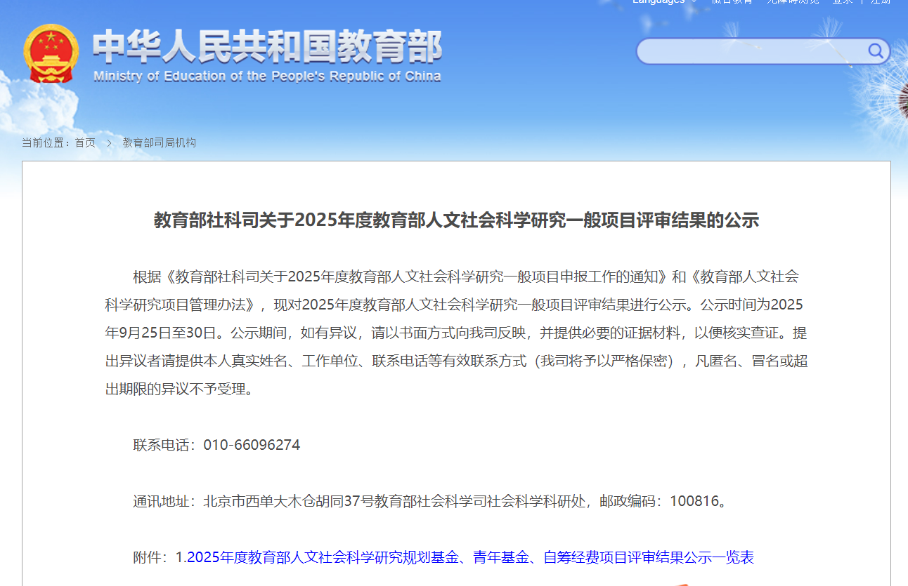 9月25日,教育部社会科学司发布了“关于2025年度高校思想政治理论课教师研究专项一般项目评审结果的公示”,我院张美丽副教授和郭松波申报项目获批(见下表),占全校立项总数的50%。
