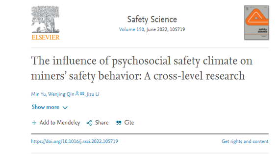 近日,我院教师禹敏博士的研究成果《The influence of psychosocial safety climate on miners’ safety behavior: A cross-level research》,发表于安全管理领域期刊《Safety Science》,该期刊位列JCR分区Q2,2021年影响因子4.877。该论文是禹敏博士与栗继祖教授的合作成果,太阳成城集团经济管理学院为第一署名单位。
