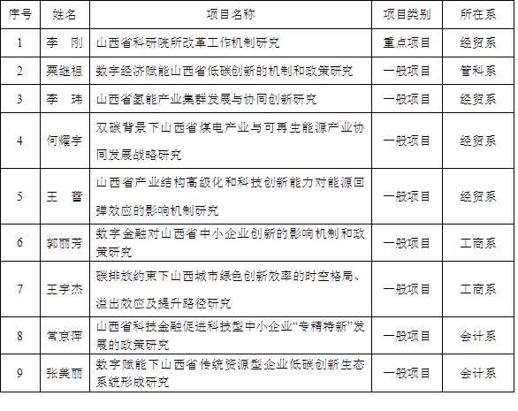 表1经管学院获批9项2022年度山西省科技战略研究专项项目(立项公示)
