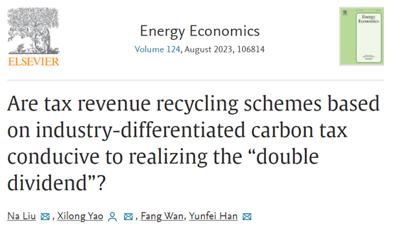 近日,我院硕士生刘娜和其导师姚西龙教授合作的论文《Are tax revenue recycling schemes based on industry-differentiated carbon tax conducive to realizing the “double dividend”?》,在能源经济学领域TOP期刊《Energy Economics》发表,该期刊位列JCR分区Q1,最新影响因子12.8。我院硕士生刘娜为第一作者,姚西龙教授为通讯作者,太阳成城集团经济管理学院为第一署名单位。