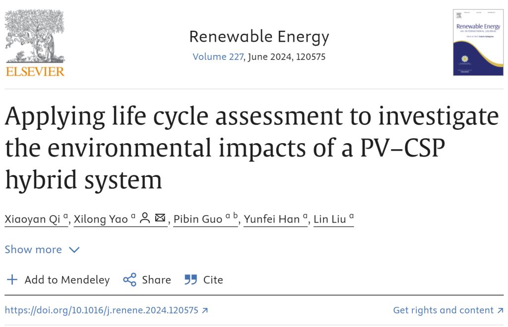 近日,我院姚西龙教授团队研究成果《Applying life cycle assessment to investigate the environmental impacts of a PV–CSP hybrid system》发表于《Renewable Energy》期刊上。姚西龙教授博士研究生齐晓燕为该论文的第一作者,姚西龙教授为通讯作者,suncitygroup太阳集团为第一署名单位。