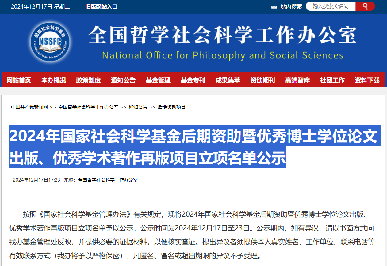 12月17日,全国哲学社会科学工作办公室发布“2024年国家社会科学基金后期资助暨优秀博士学位论文出版、优秀学术著作再版项目立项名单公示”,我院副院长陈怀超教授所申报项目《技术生态位对制造企业跨界创新影响的机制与路径研究》拟获资助。