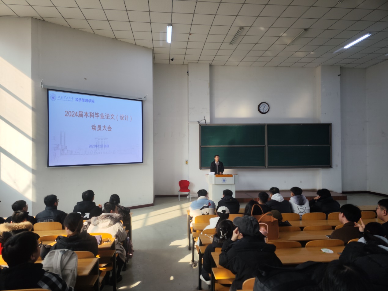 2023年12月28日,经济管理学院举行2024届本科毕业论文(设计)动员大会,学院副院长姚西龙、辅导员老师及2024届毕业生参加会议。