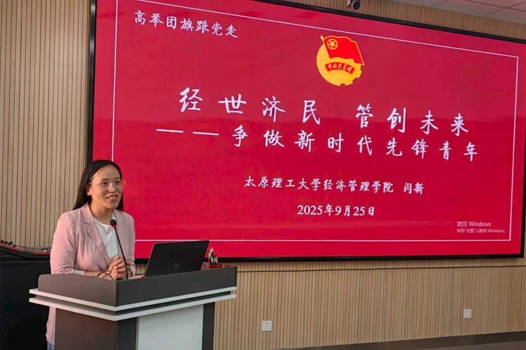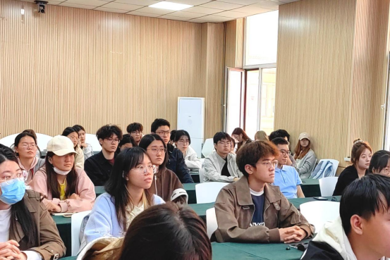 随后,闫新以“经世济民,管创未来——争做新时代先锋青年”为主题,围绕“音乐中的理想、诗词中的信念、实干中的精神、青春中的奋斗”四个方面进行授课。通过解析红色音乐作品的时代背景与精神内涵,阐述共青团员应有的理想追求;通过结合毛泽东经典诗词,解读革命信念的磅礴力量;以先进人物的表现为例,强调实干对于团员成长的重要性;围绕新时代青年使命,号召全体学员用青春力量为中国式现代化挺膺担当。