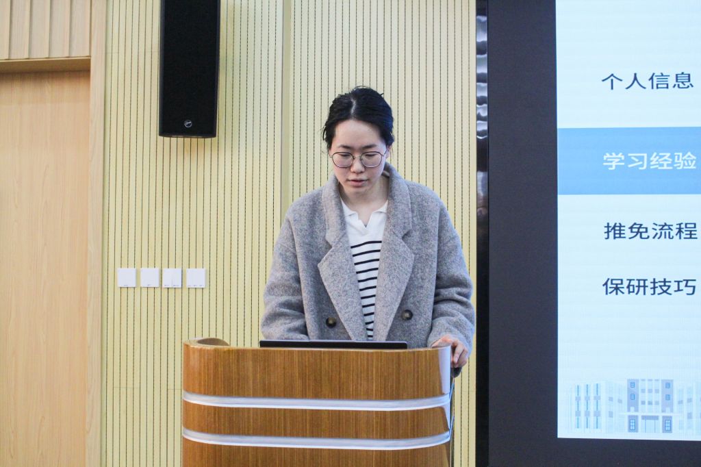 在分享环节中,来自工程管理、物流管理、会计学、国际经济与贸易专业的成功推免至名校的学子,倾囊相授。他们围绕保研时间线与推免流程、个人目标定位、信息获取渠道、面试准备与心态调整等关键议题,进行了系统而深入的解读。随后的互动问答环节气氛热烈,同学们积极提问,“小讲师”们耐心解惑,在真诚的交流中有效驱散了迷雾,凝聚了共识,坚定了信心。