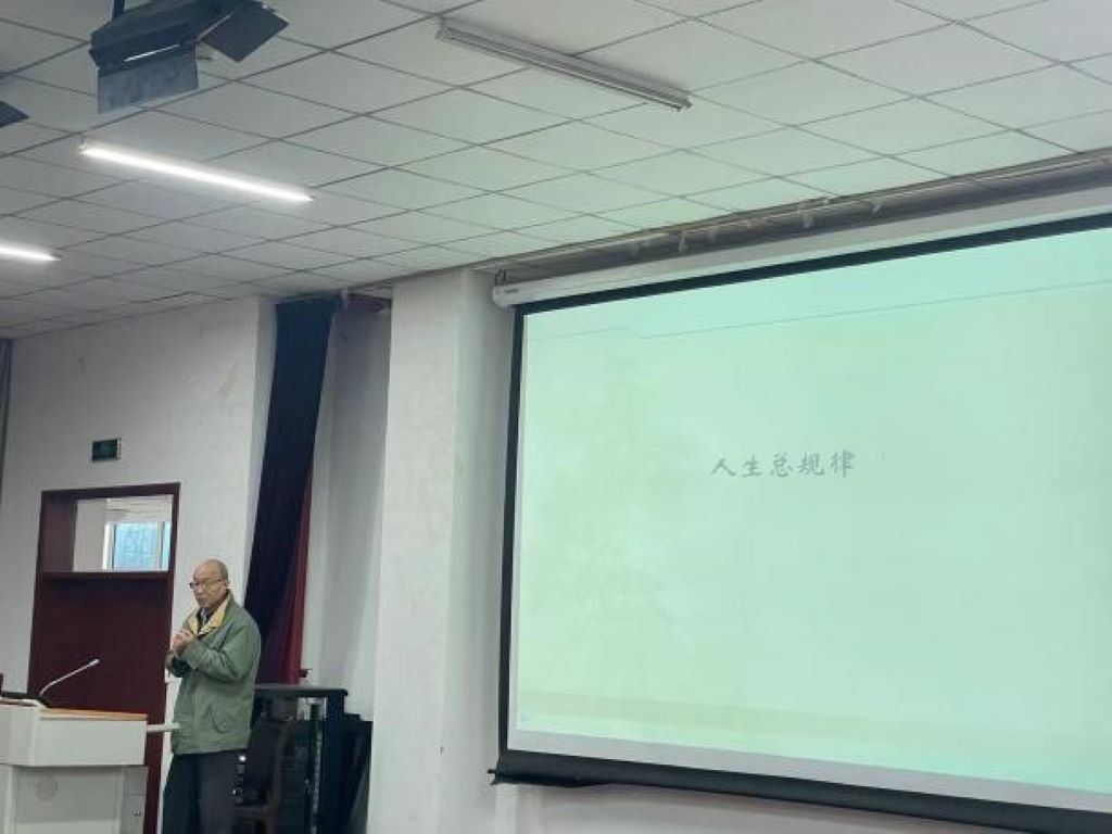 孙转科老师以“人生总规律”为主题,深刻揭示了人生目标中的功名利禄等与“真善美”之间的内在联系与辩证关系,给予了11条人生建议,为参会的同学们指出了一条在社会主义现代化建设的道路上实现自身价值的现实路径。