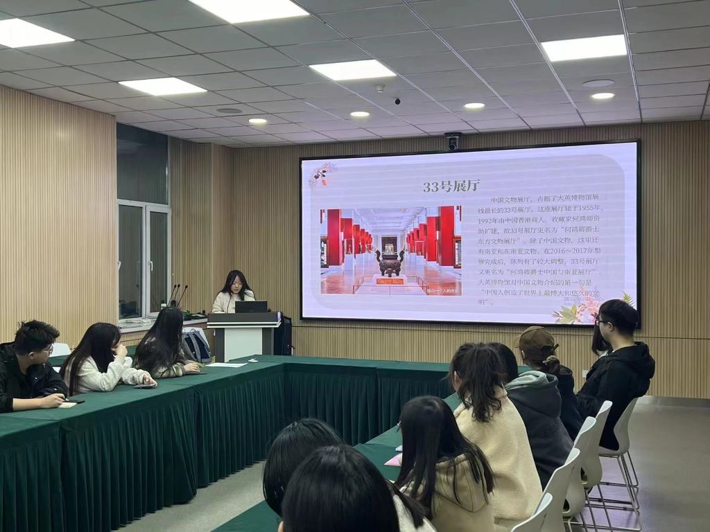 宣讲以短剧《逃出大英博物馆》为引,将文物拟人化,讲述了从大英博物馆挣脱束缚的中国玉壶在一名中国记者的帮助下,重回祖国的故事。通过该网络短剧,向大家介绍了至今仍流落海外的无数文物瑰宝,“女史箴图”“敦煌壁画”激发了同学们强烈的爱国之情。