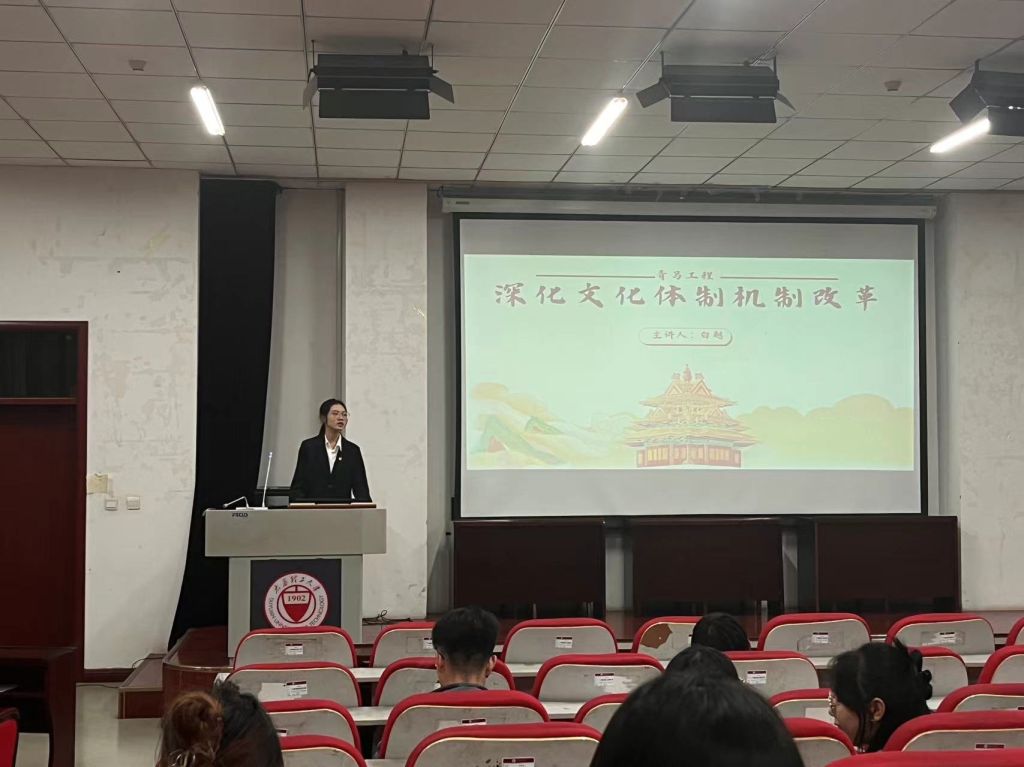活动最后,白越总结发言,鼓励同学们要以实际行动推动文化体制机制的深化改革,把个人成长与国家发展紧密结合,勇担时代赋予的使命与责任。她号召同学们要坚定信念,脚踏实地,为国家文化事业的发展贡献青春力量。