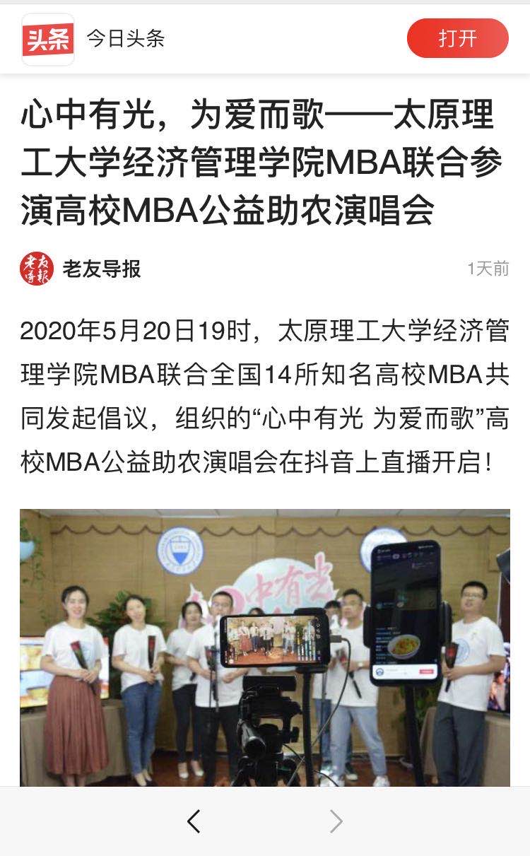今日头条客户端报道我院MBA学子520公益演唱会活动