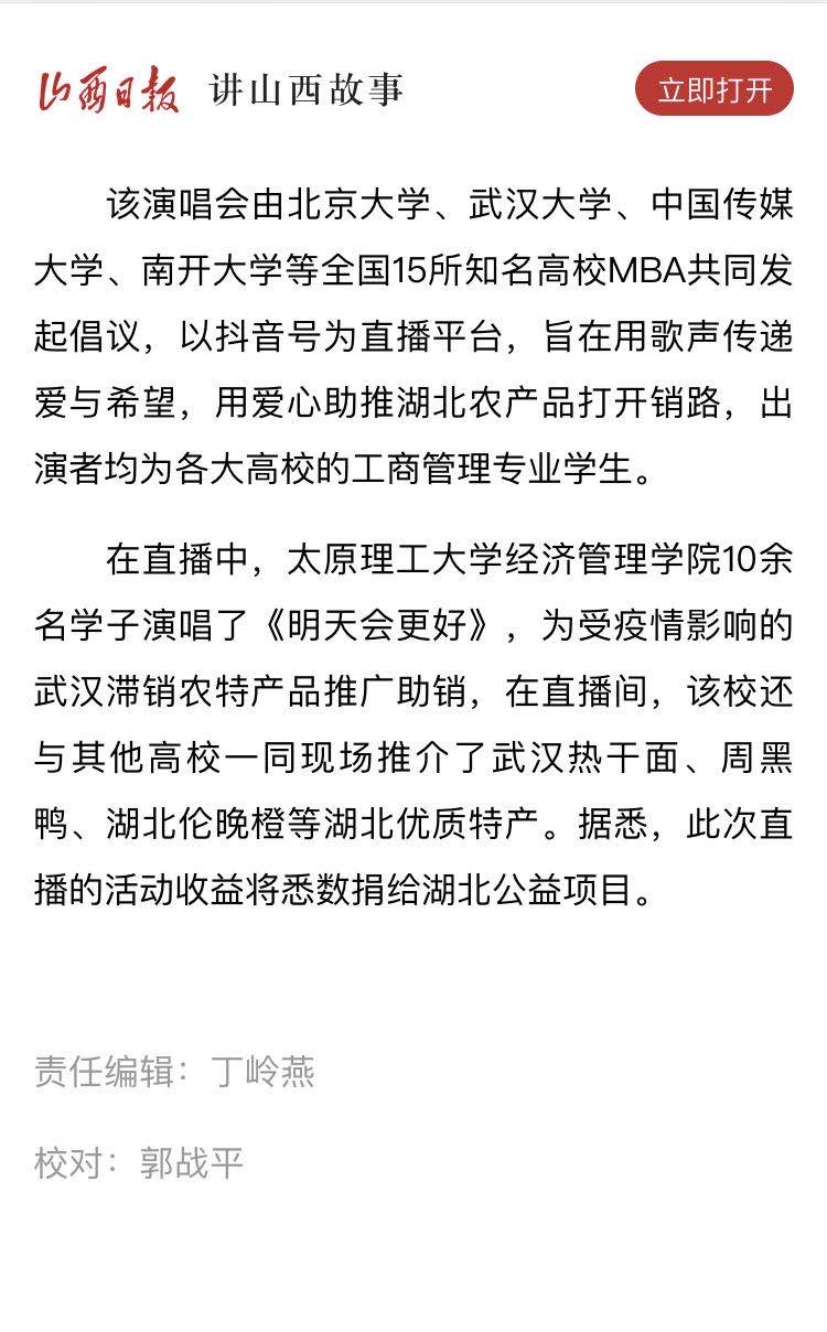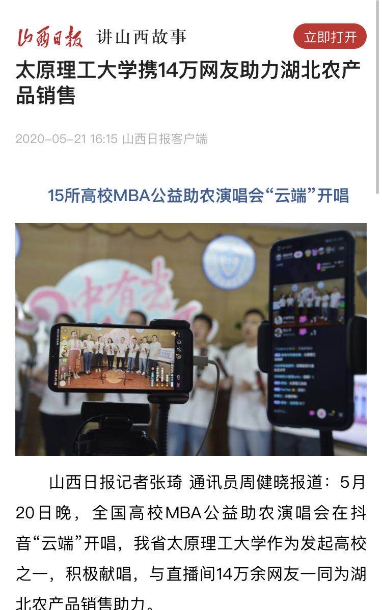 山西日报客户端报道我院MBA学子520公益演唱会活动