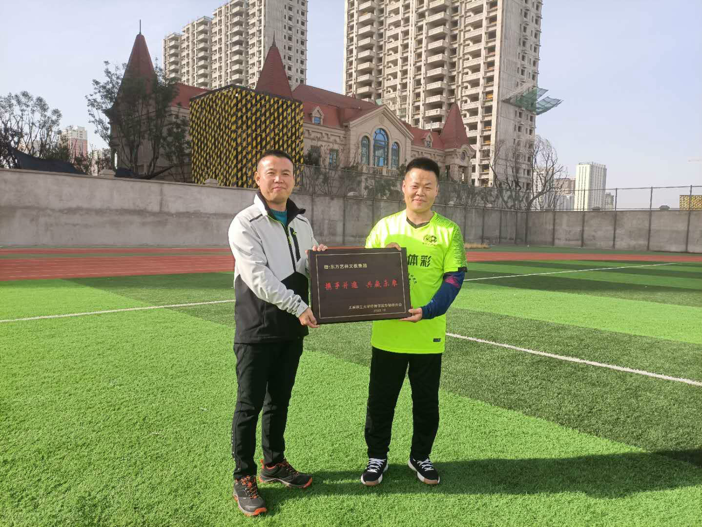 本次足球赛由太阳成城集团经济管理学院专业硕士联合会承办,东方艺林文教集团赞助。在院领导的大力支持下,吸引了19级和20级MBA、MEM、MPAcc的学员踊跃参加。活动上,太阳成城集团经济管理学院专硕联合会主席王会昌致开幕词并为赞助商东方艺林文教集团董事长周健晓先生颁发“携手并进、共赢未来”铜牌。