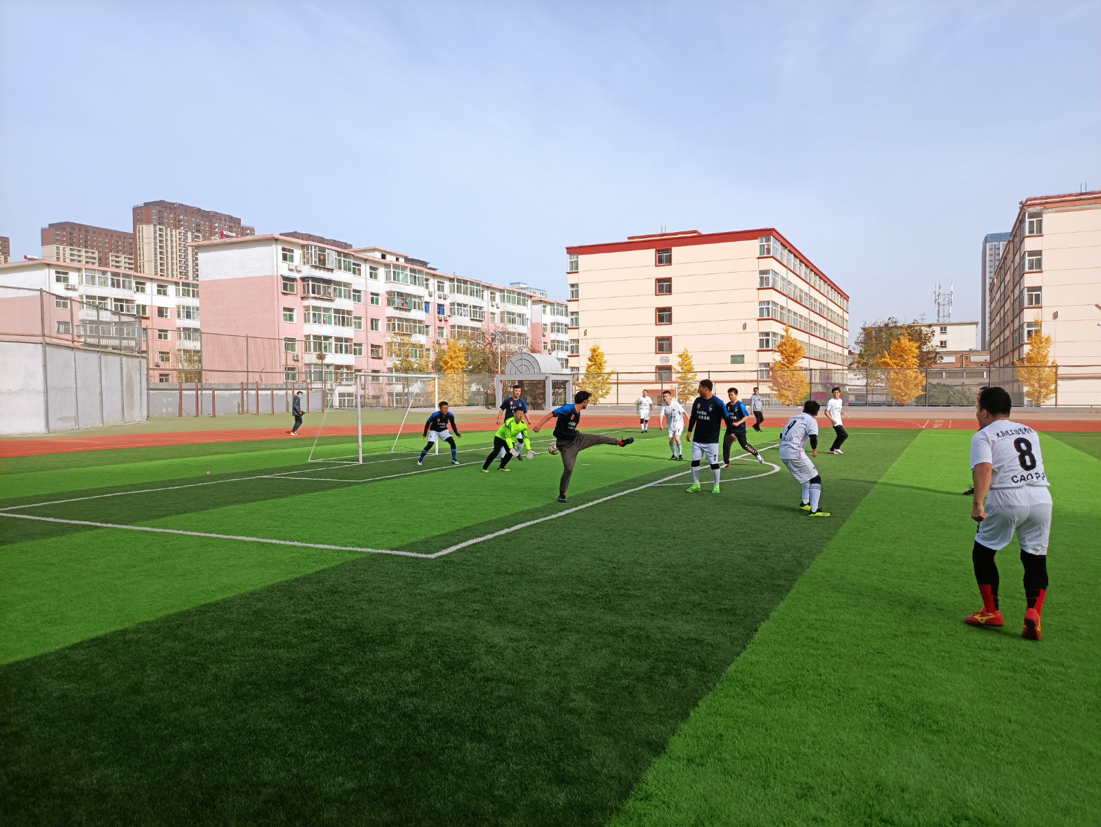 在裁判员的哨令下,比赛正式开始。双方队员激烈拼抢,白队经过几脚传导,由队长朱芳伟射门先拔头筹。蓝队也不甘示弱,一个大脚开到前场,头球摆渡,助攻队友完成得分。两队你争我夺,在比赛中团队默契也渐渐培养,最终蓝队3:2以一球险胜白队,获得此次比赛胜利。