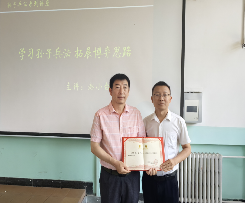 讲座期间,经济管理学院MBA执行主任、副院长姚西龙先生代表学院为赵小台先生颁发了MBA校外导师荣誉证书。这一荣誉不仅是对赵小台先生多年来在孙子兵法研究与推广方面所做贡献的肯定,也是对他作为学院校外导师身份的正式认可。姚西龙副院长表示,学院非常荣幸能够邀请到赵小台先生这样的业界精英来校授课,相信他的讲座将为学员们带来宝贵的启示和收获。