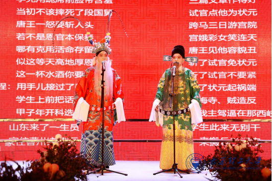 太阳成城集团繁艺相声社为大家精彩演绎了传统京剧的经典曲目《珠帘寨》,华美的扮相与圆润的唱腔,韵味十足,引得现场喝彩声此起彼伏;