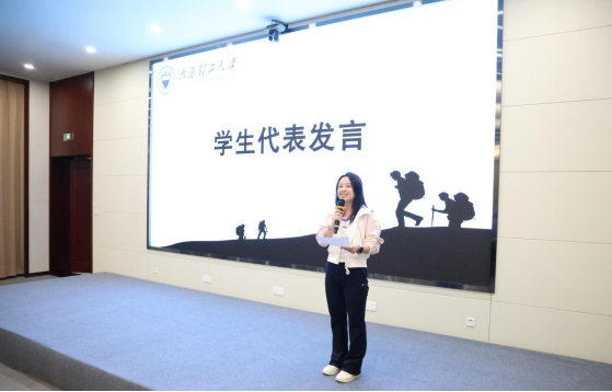 参赛选手代表2024级MBA班弓晓敏作表态发言,她表达了对两项重要赛事的热切期待和坚定信心,在合作与竞争中激发个人潜能,突破自我,全力以赴完成赛事。