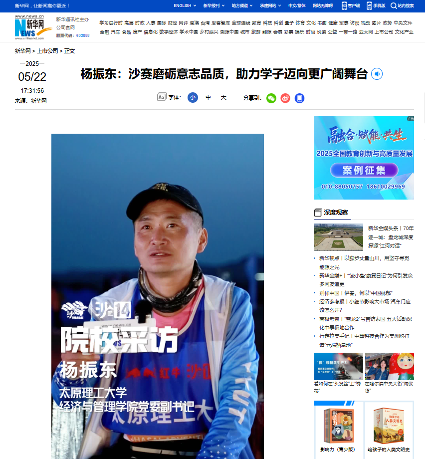 近日,suncitygroup太阳集团党委副书记杨振东作为C组队员,首次带队参加第十四届商学院沙漠挑战赛(简称“沙赛”)。他在活动中表示,沙赛为商学院学子提供了宝贵的交流平台,具有高度的融合性。通过沙漠中数日的风餐露宿、跋山涉水,学子们不仅磨练了意志品质,更在多维度体验中感受到赛事的独特影响力与魅力。