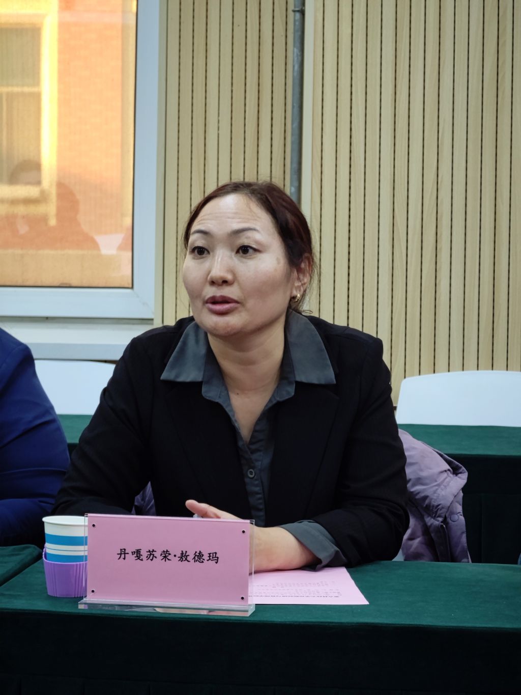 蒙古科技大学商业与人文学院社会工作系主任丹嘎苏荣·敖德玛介绍了特色项目、专业建设等方面的情况。