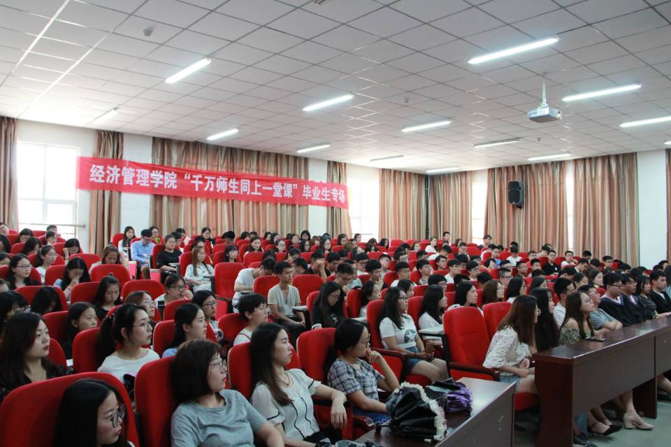 6月14日下午,经济管理学院在明向校区经管报告厅召开“学习新思想,千万师生同上一堂课”毕业生专场暨毕业生工作会议,院党委书记李玮、副书记杨振东及毕业班辅导员、班主任出席会议,2018届全体毕业生参会,会议由杨振东主持。