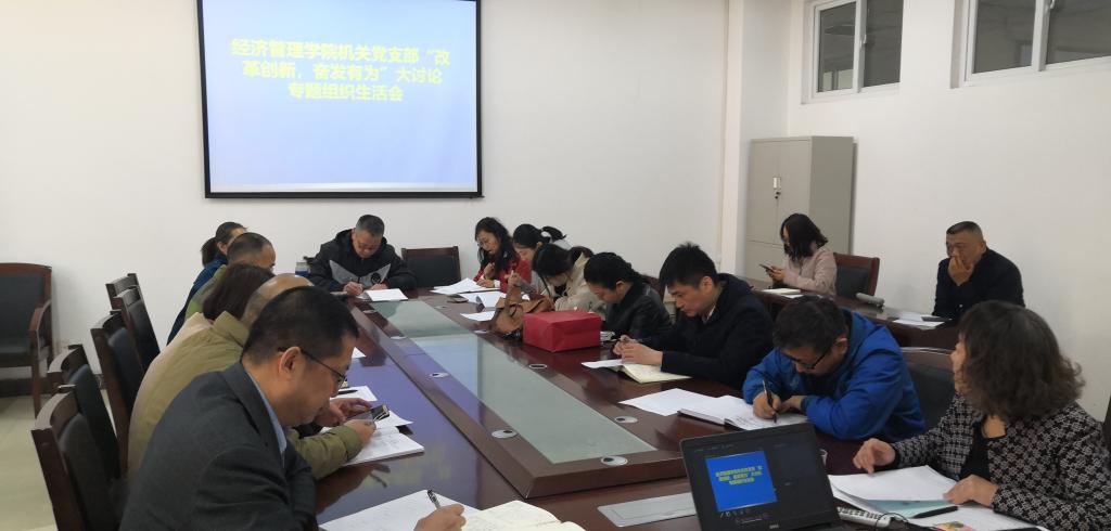 4月2日上午,经济管理学院机关党支部召开“改革创新奋发有为”大讨论专题组织生活会,党支部书记戴鸢主持会议,支部全体党员参会,学院全体院领导以普通党员身份参加了组织生活会,会议还邀请了部分师生代表参加。