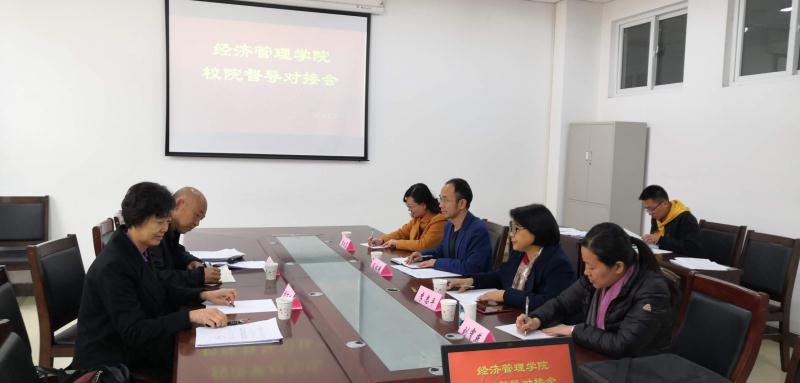 2019年3月21日,校院督导组工作会议在经济管理学院226会议室召开,学校督导组张元河和赵丽萍老师,学院督导组李恩平和李秋霞老师、经济管理学院陈怀超副院长和教科办刘霄燕副主任等出席会议,会议由陈怀超副院长主持。